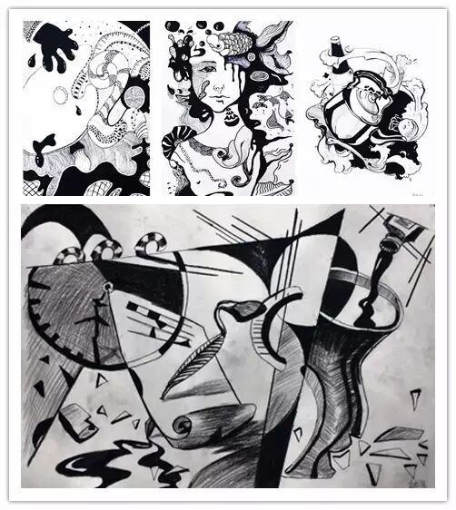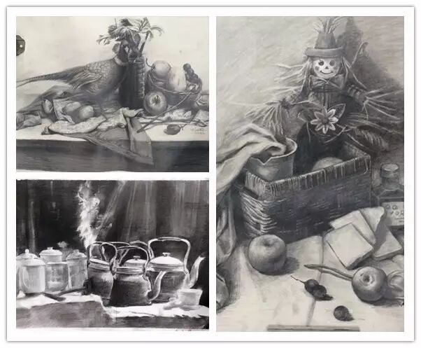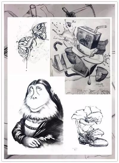 今天要给大家分享的是15级同学们的学习成果。他们入校之前大都没有美术基础,抱着对绘画的喜爱和设计的憧憬来到了科园,以下分享的是视觉传达和装饰设计专业同学们的设计素描作品。
