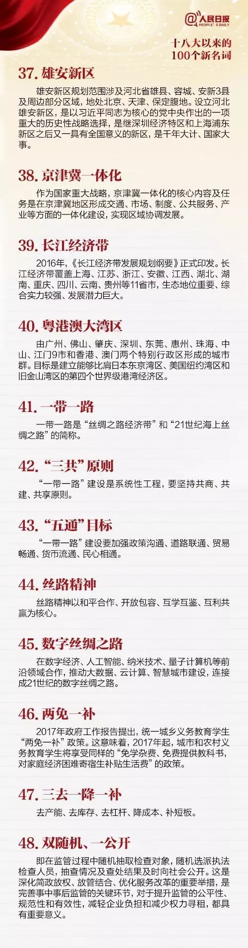 今天七一,人民日报梳理了党的十八大以来的100个新名词。这些词语,体现了以习近平同志为核心的党中央治国理政的新理念、新思想、新战略。